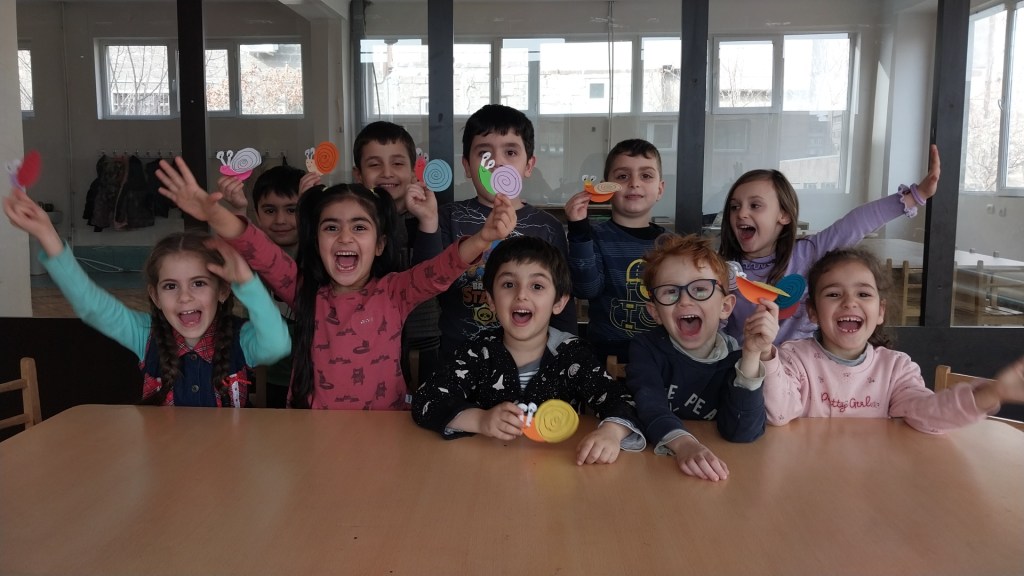 Այսօր 5 տարեկանների խմբի սովորողների հետ սովորեցինք խխունջ բառը։ Աշակերտները սովորեցին այն մուտքագրել համակարգչով։ Իսկ օրվա վերջում կատարեցինք տեխնոլոգիական աշխատանք։ Պատրաստեցինք թխթե խաղալիք` խխունջ։