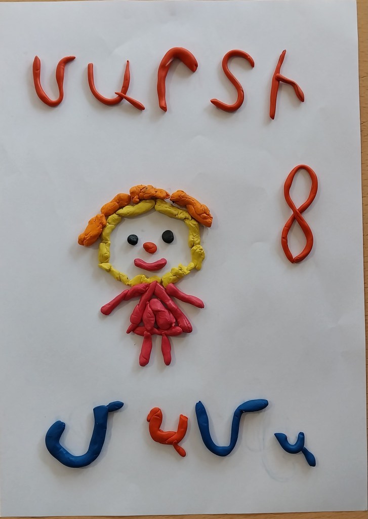 Ձոն տեխնոլոգիական ստուգատեսի շրջանակներում սովորողները ծեփամածիկի օգնությամբ պատկերեցին իրենց մայրիկներին և պատրաստեցինք տառեր` շնորվավորելով իրենց մայրիկներին մարտի 8֊ի կապակցությամբ։