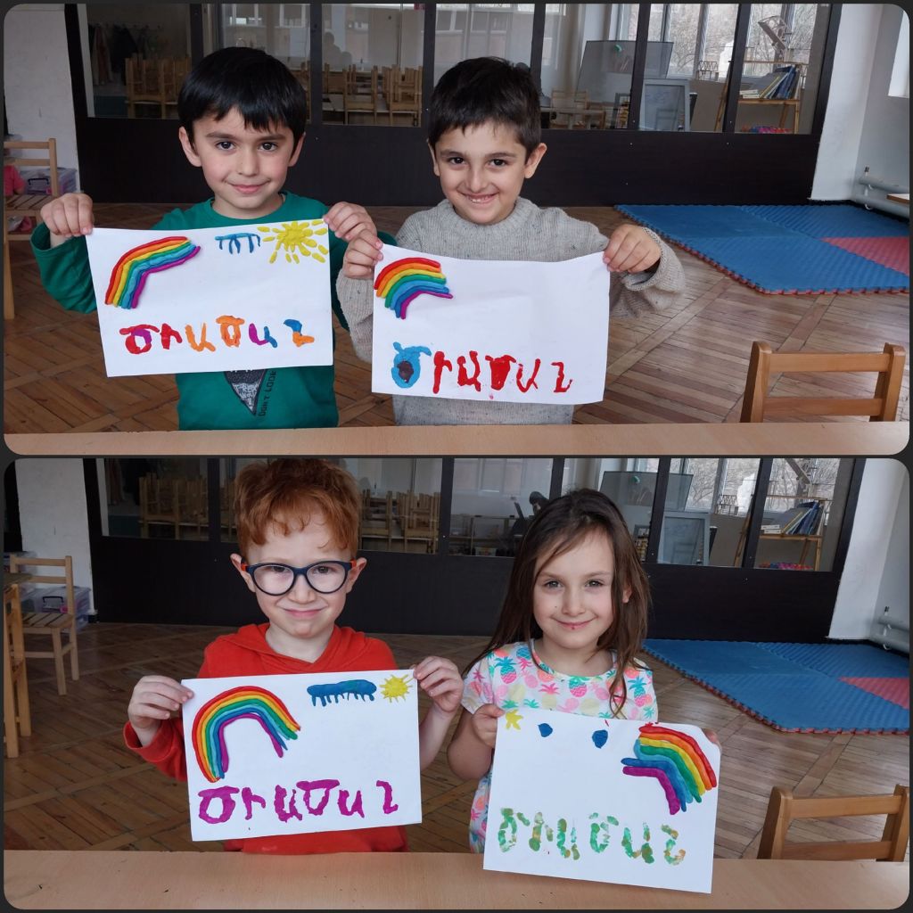 Այսօր 5 տարեկանների հետ սովորեցինք նոր բառ`ծիածան։ Սովորեցինք նաև ծիածանի գույների հերթականությունը։