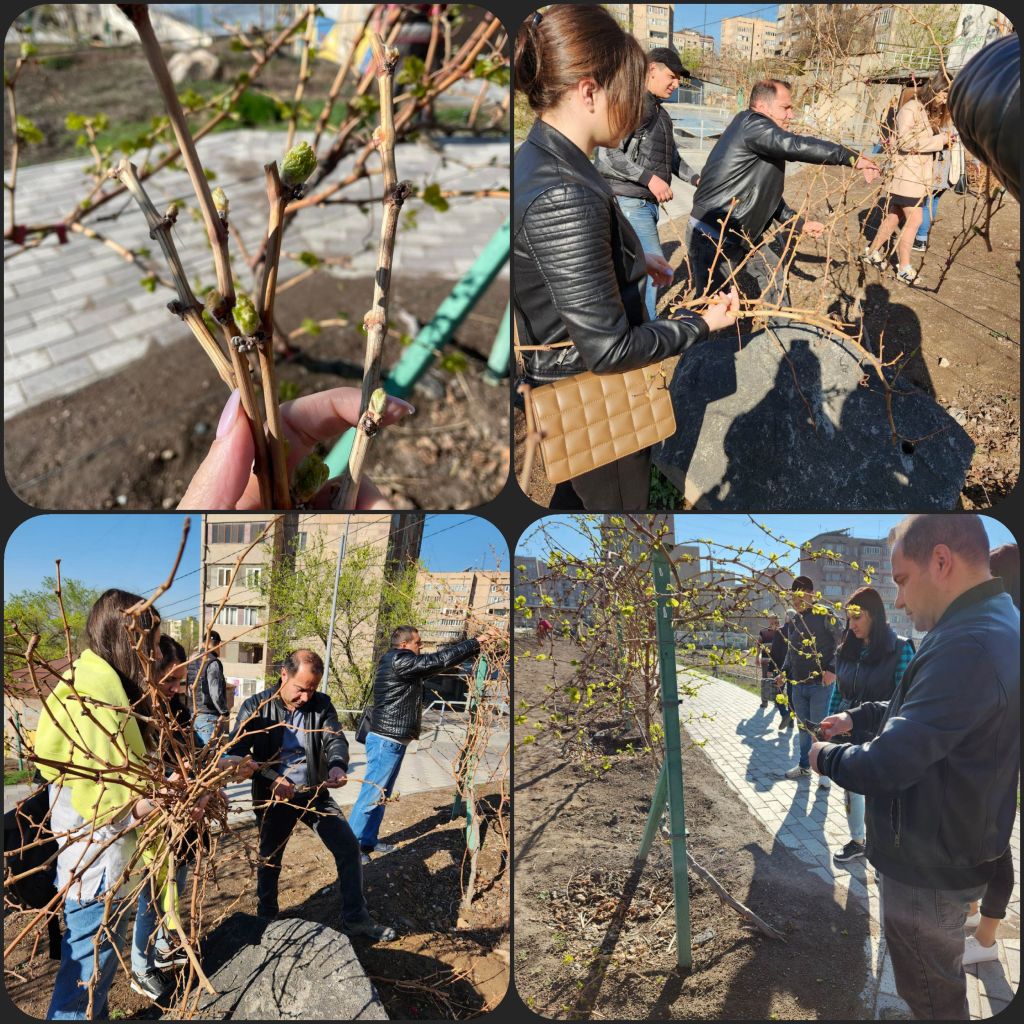 Երկրորդ օրը հավաքվեցինք Մայր դպրոցի բակում և միասին բարձրացանք Սարալանջ։ Այնտեղ հանդիպեցինք Արտակ Ռշտունու հետ, ով պատմեց մեզ խաղողի տեսակների, նրանց ճիշտ խնամքի և տարեկան ստացված բերքի քանակի մասին։ Հավաքեցինք խաղողի էտած ճյուղերը, իսկ մեզ համար վերցրեցինք խաղողի վազից փոքրիկ շիվեր։