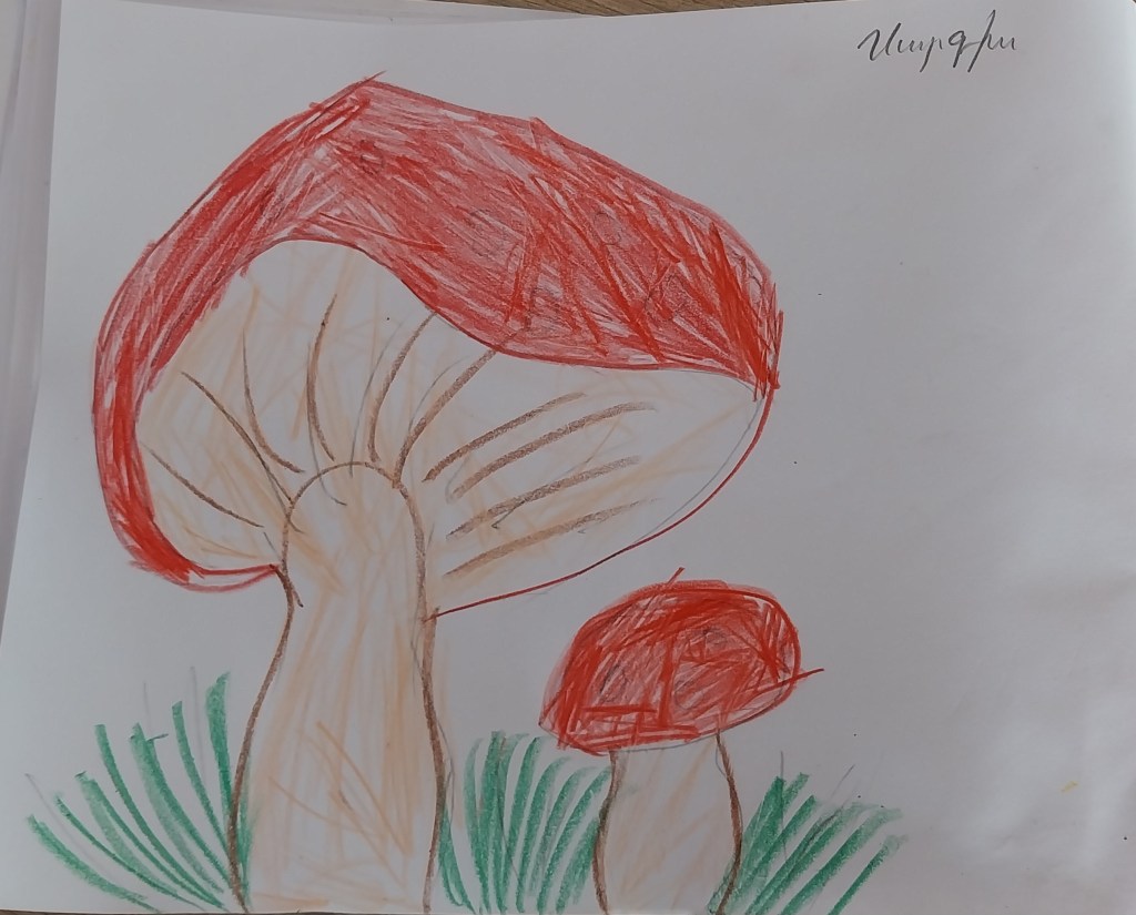 Սնկի սեզոնը համարում ենք բացված։ Այսօր Հյուսիսային դպրոցի 5֊6 տարեկանները սովորեցին հանելուկ սնկի մասին, ինչպես նաև նկարեցին այն։