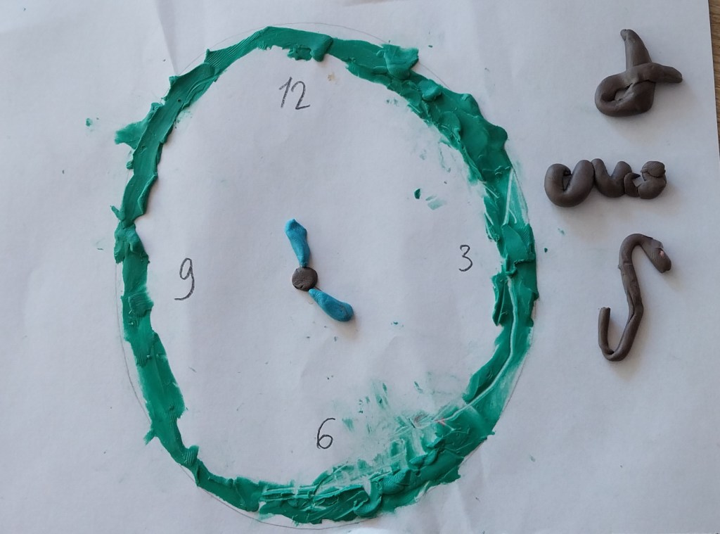 Այսօր Հյուսիսային դպրոցի 5 տարեկանների հետ սովորեցինք ժամացույց բառը, իսկ օրվա վերջում արդեն պատրաստեցինք ծեփամածիկով ժամացույցներ։