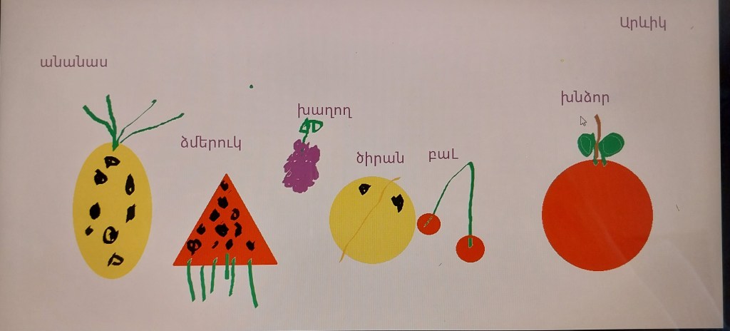 Հաշվետվություն Paint ծրագորվ աշխատանք Дата: 16 мая 2023Автор: merikarapetyanhomeblog 0 Комментарии Այսօր Հյուսիսային դպրոցի 5 տարեկանները paint ծրագրով նկարեցին մրգեր և մուտքագրեցին դրանց անունները։ Поделиться ссылкой: Нажмите, чтобы поделиться в X (Открывается в новом окне) X Нажмите, чтобы открыть на Facebook (Открывается в новом окне) Facebook Нравится Загрузка... Похожее
