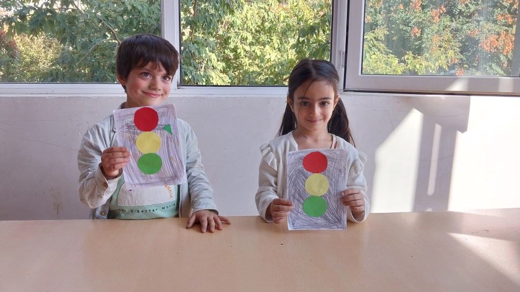 Այսօր Հյուսիսային դպրոցի 5 տարեկանների հետ ծանոթացանք և քննարկեցինք երթևեկության կանոնները։ Այնուհետև սովորողները պատրաստեցին լուսացույցներ։