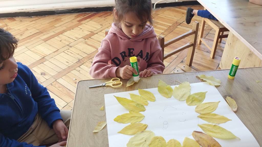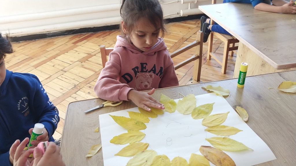 Այսօր Հյուսիսային դպրոցի 5 տարեկանները պատրաստեցին արև և ծառ` իրենց իսկ հավաքած տերևներով։