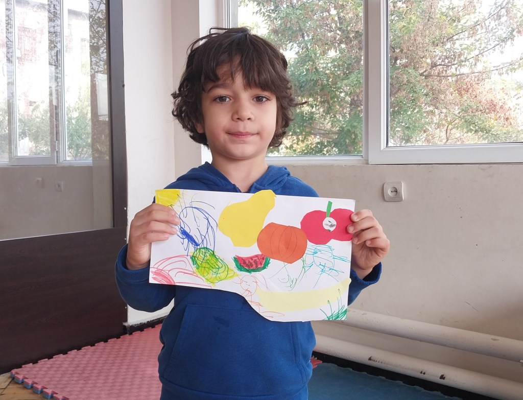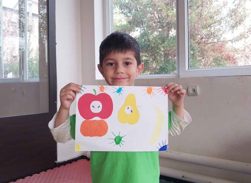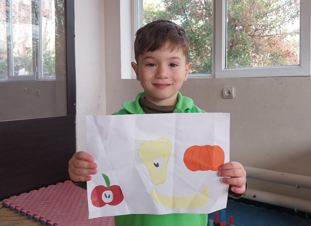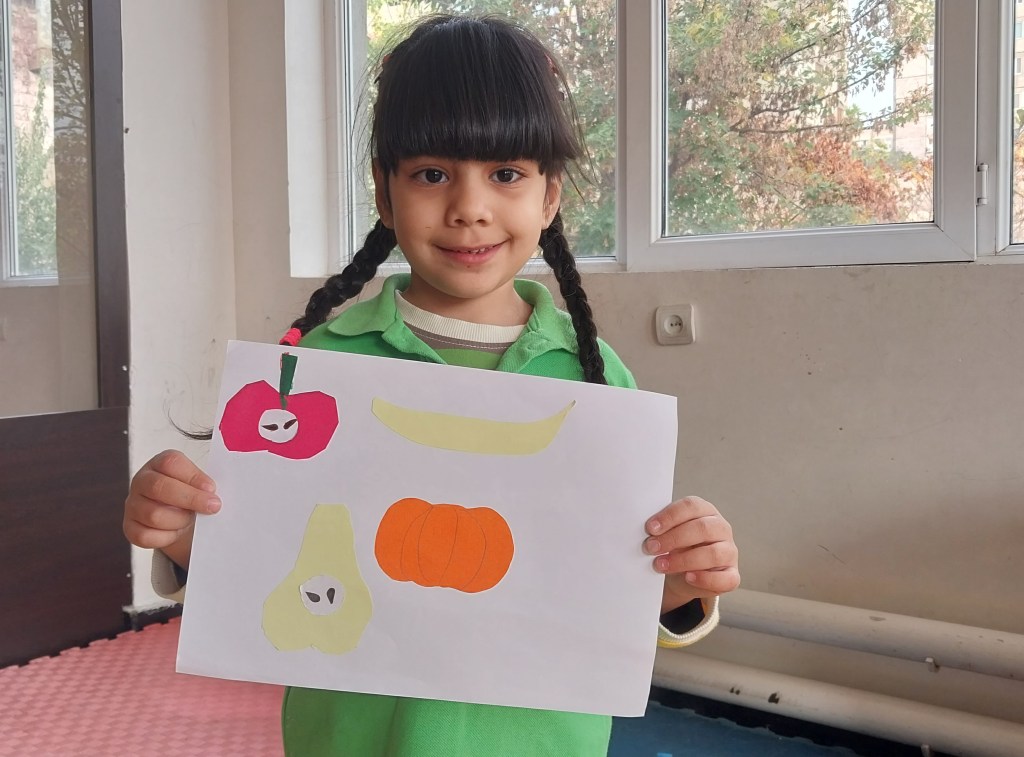 Այսօր Հյուսիսային դպրոցի 5 տարեկանները գունավոր թղթերից պատրաստեցին աշնանային համեղ մրգեր և բանջարեղեն։