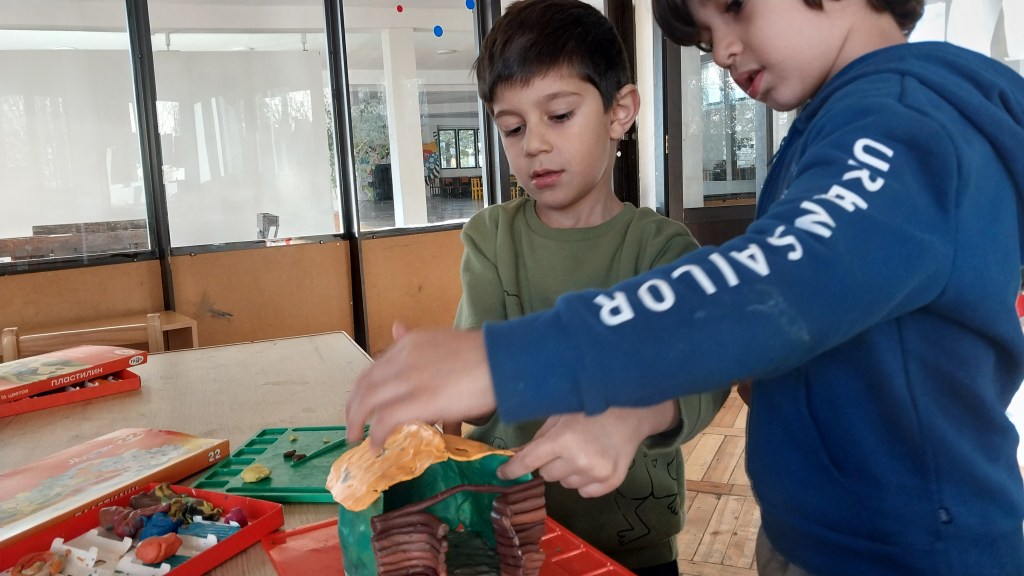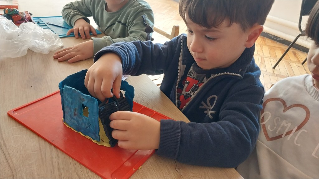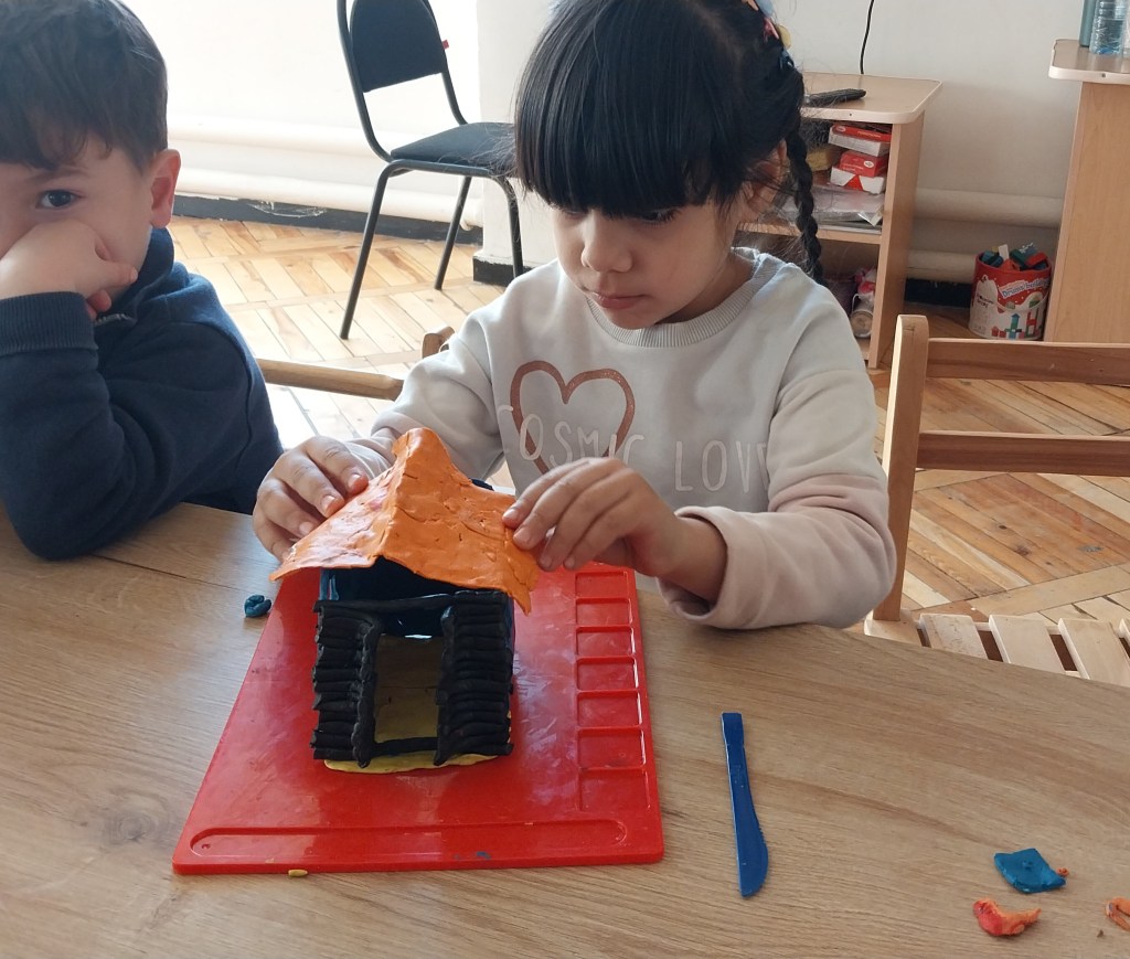 Ձեր տունը շեն իլի նախագծի շրջանակներում 5 տարեկանները պատրաստեցին պլաստիլինե տնակներ։ Այս անգամ աշխատեցին խմբերով, կազմեցին 5֊6 հոգանոց խմբեր։ Խմբի ներսում կատարեցինք է աշխատանքների բաժանում, սովորողներից յուրաքանչյուրը պատրաստեց տան որևէ դետալ, այնուհետև դետալները միմյանց միացնելով ստացան գեղեցիկ տնակներ։