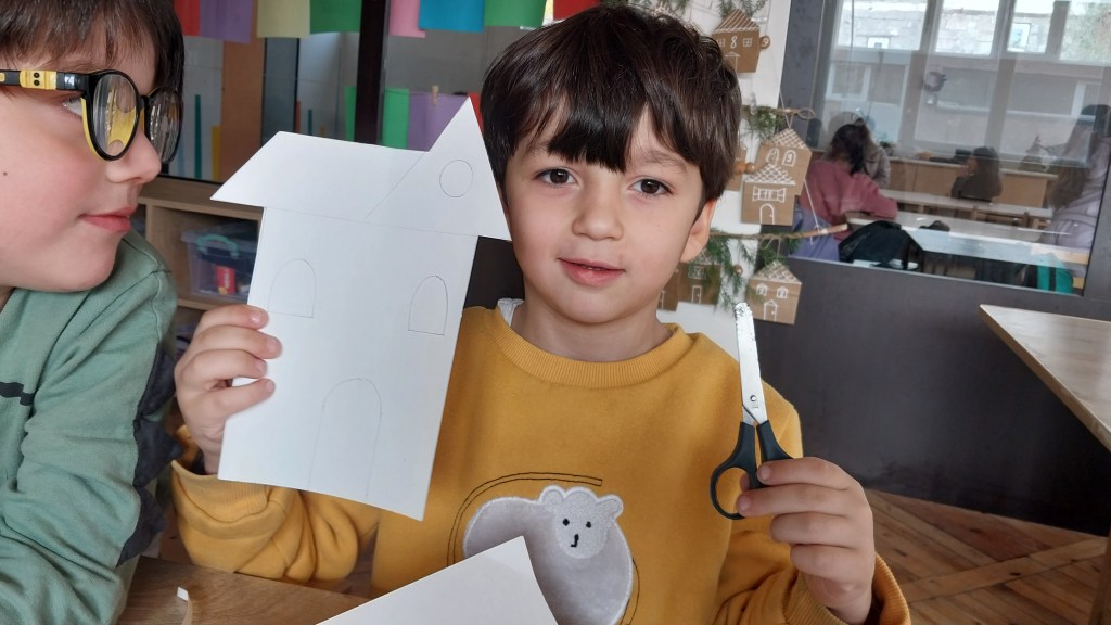 Ձեր տունը շեբ իլի նախագծի շրջանակներում պատրաստեցինք թղթե տնակներ և դրանցով զարդարեցինք խմբասենյակի լուսամուտները։