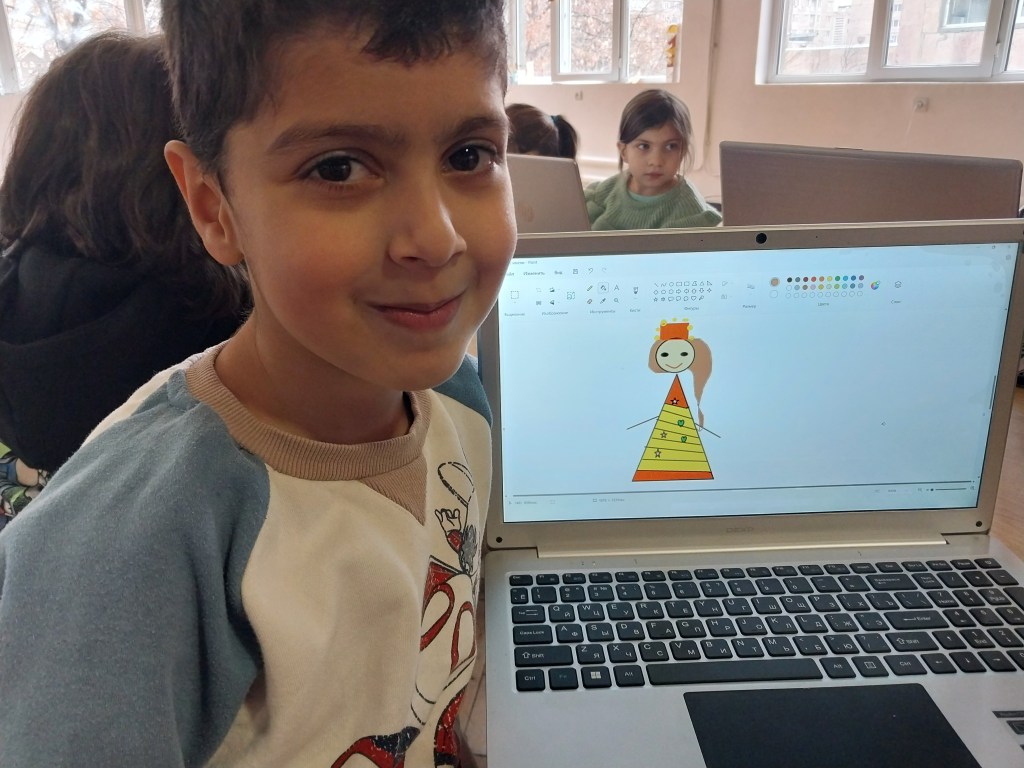 Ազգագրության փառոտոնի շրջանակում սովորողնեը paint ծրագրի օգնությամբ նկարեցին տարազով տիկնիկներ։