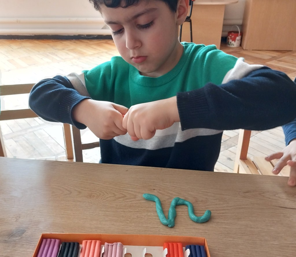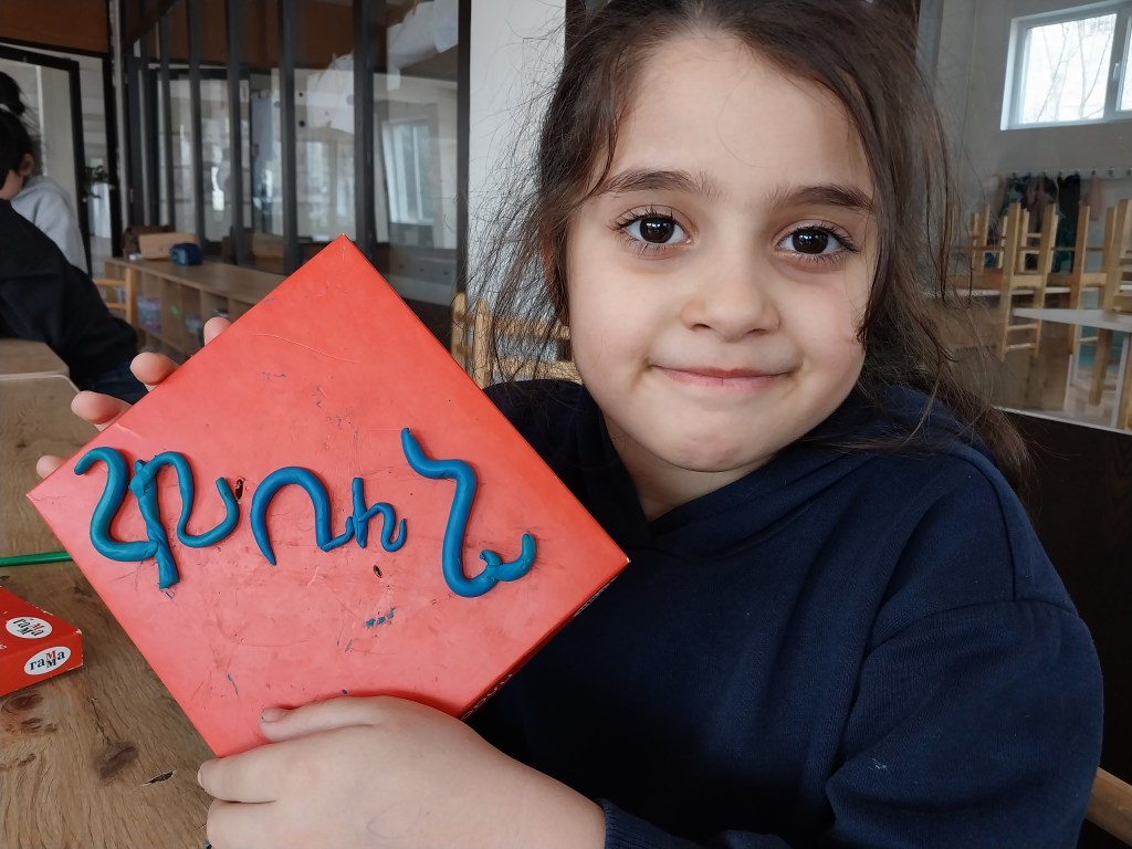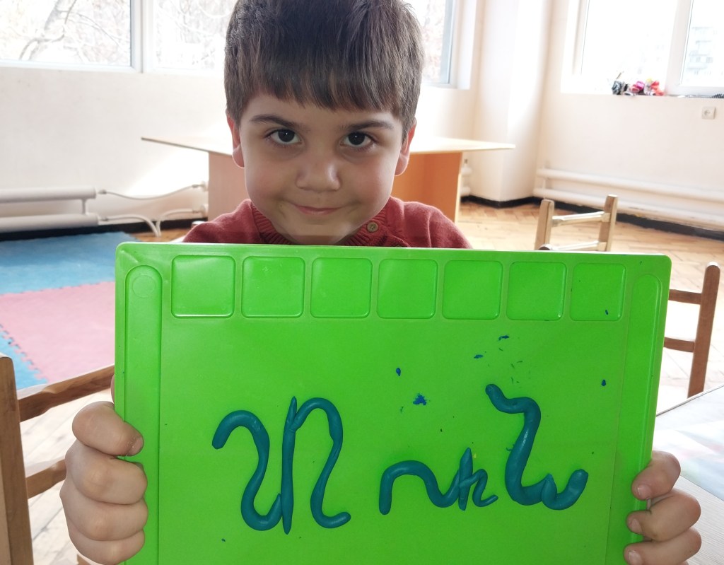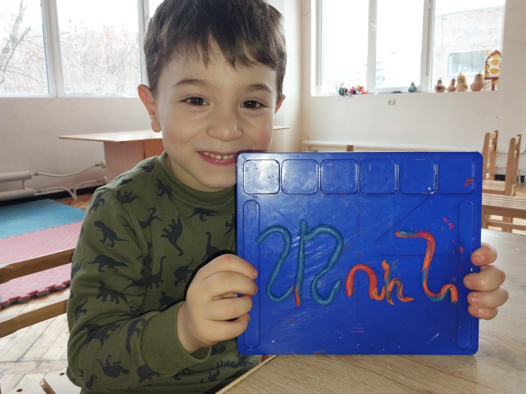 5-6 տարեկանների հետ տառերը ճանաչելու հետաքրքիր եղանակներ ենք գտնում։Այսօր նրանք ծեփամածիկներով ծեփեցին իրենց ծանոթ տառերը։Այս անգամ պատրաստի տառերը համախմբելով ստացան տուն բառը։