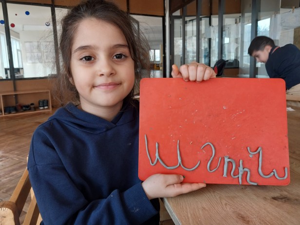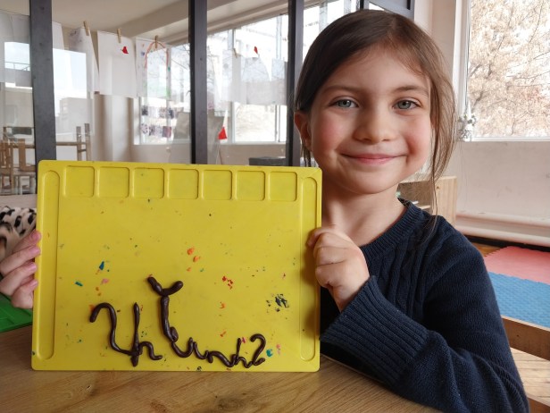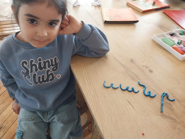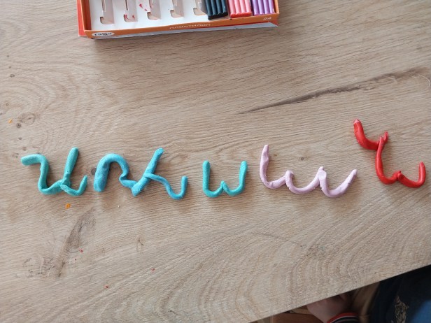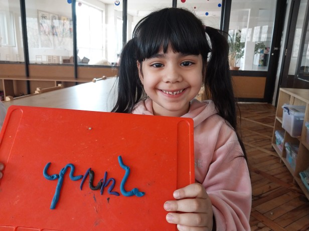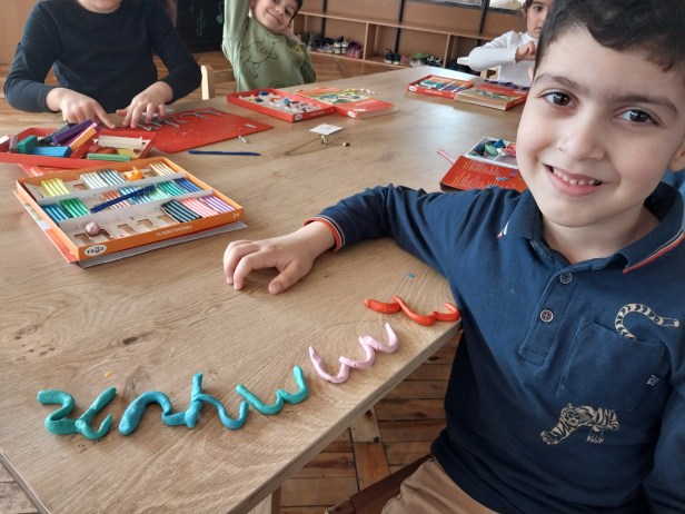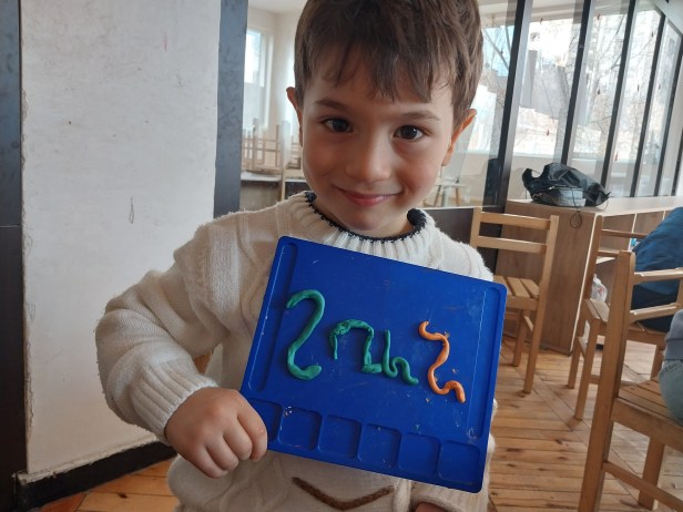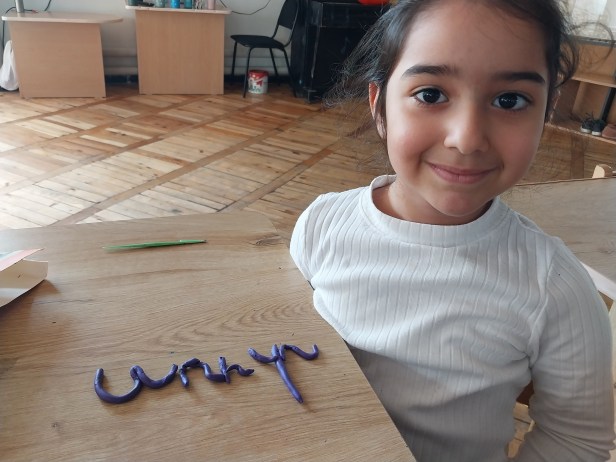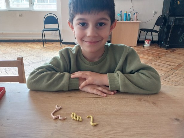 5-6 տարեկանների հետ տառերը ճանաչելու հետաքրքիր եղանակներից է տառծեփիկը։Այսօր նրանցից յուրաքանչյուրը ծեփամածիկներով ծեփեց իրենց ծանոթ բառերից մեկը։