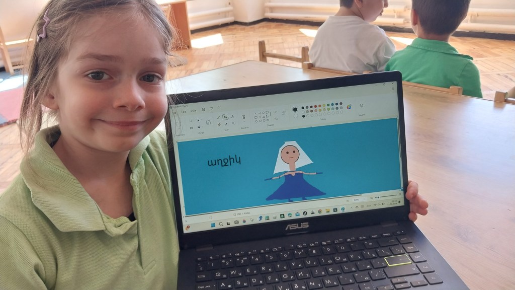 Հաշվետվություն 2023 Paint ծրագրով աշխատանք Дата: 15 мая 2024Автор: merikarapetyanhomeblog 0 Комментарии Paint ծրագրով սովորում ենք նկարել և մուտքագրել աղջիկ բառը։ Поделиться ссылкой: Нажмите, чтобы поделиться в X (Открывается в новом окне) X Нажмите, чтобы открыть на Facebook (Открывается в новом окне) Facebook Нравится Загрузка... Похожее