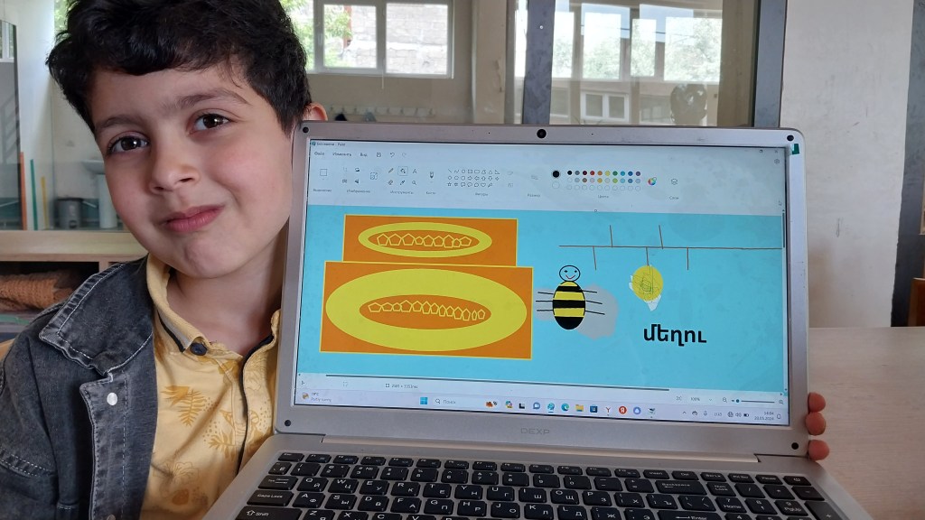 Հաշվետվություն 2023 Paint ծրագրով աշխատանք Дата: 21 мая 2024Автор: merikarapetyanhomeblog 0 Комментарии Paint ծրագրով նկարում ենք մեղու և մուտքագրում մեղու բառը։ Поделиться ссылкой: Нажмите, чтобы поделиться в X (Открывается в новом окне) X Нажмите, чтобы открыть на Facebook (Открывается в новом окне) Facebook Нравится Загрузка... Похожее