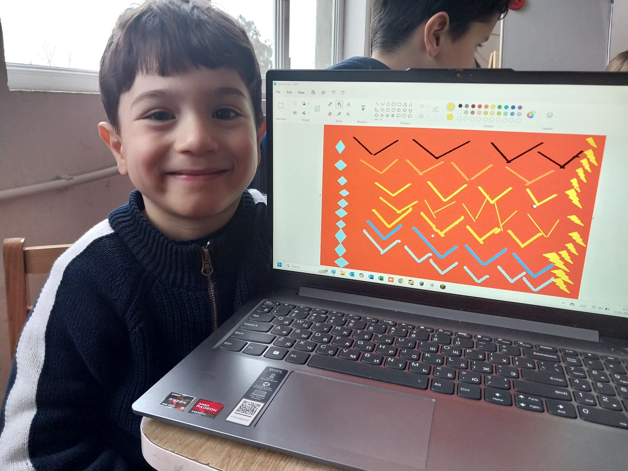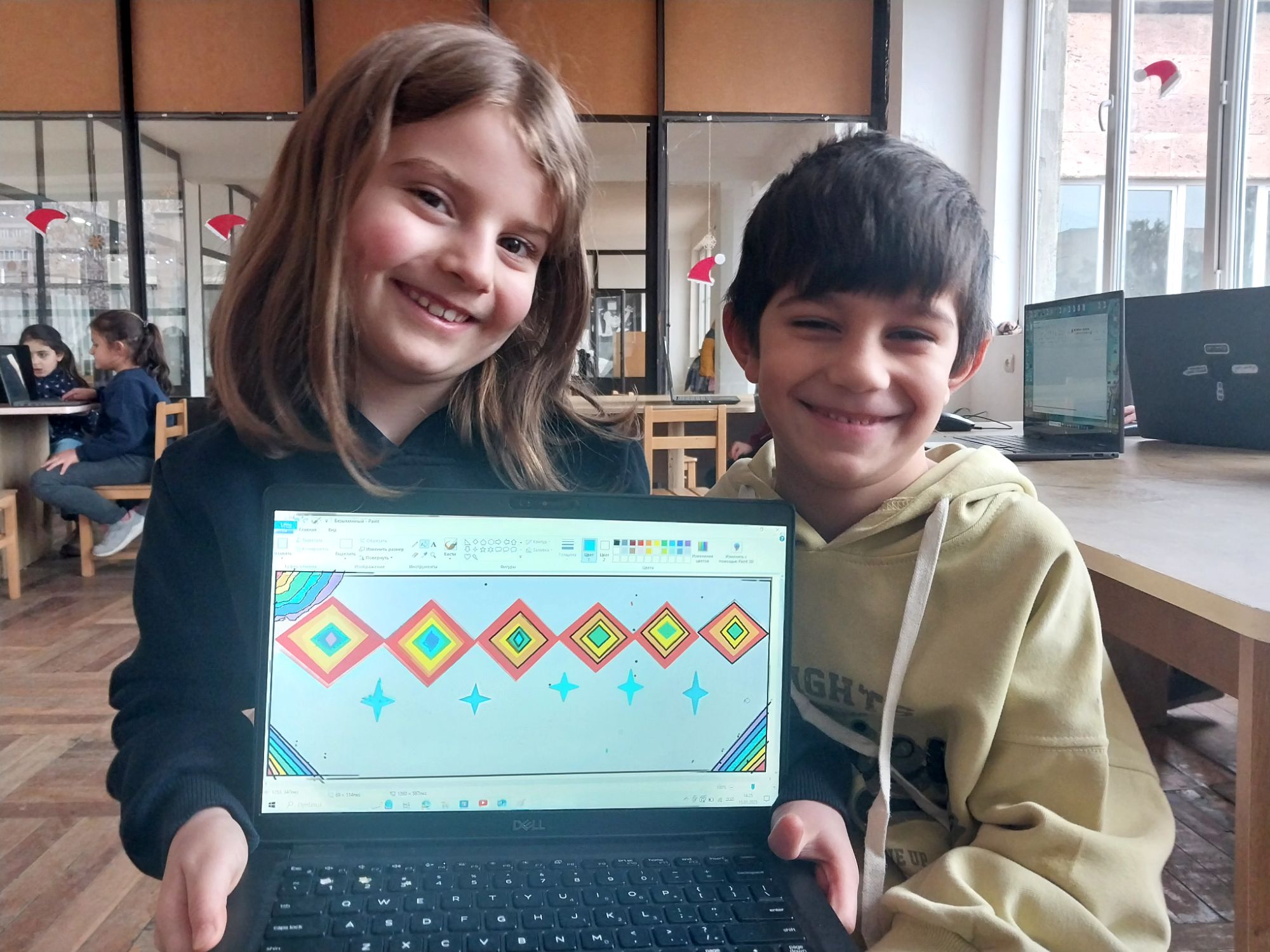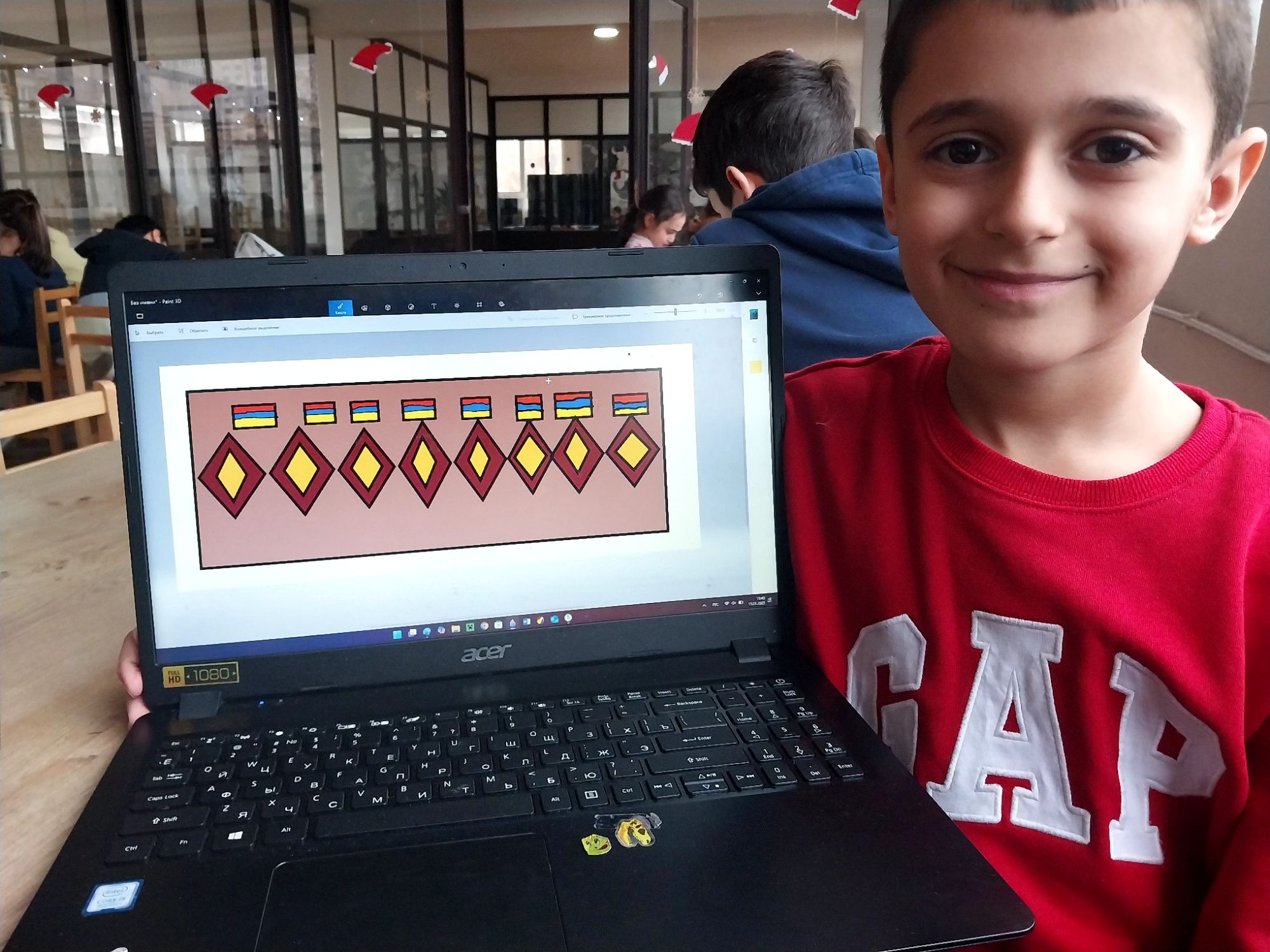 Ազգագրության փառատոնի շրջանակում հյուսիսային դպրոցի երկարացված օրվա տարատարիք սովորողները paint ծրագրով նկարում են ազգային զարդանախշեր։