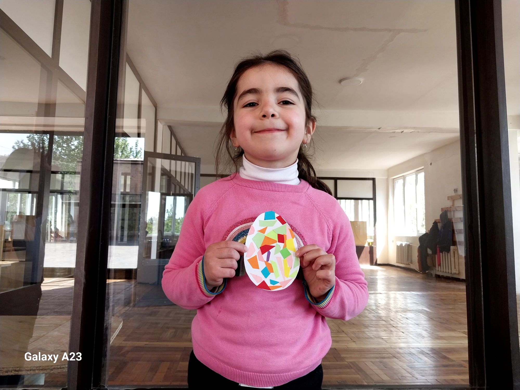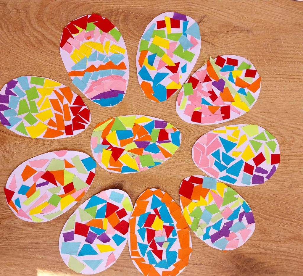 <<Զատկածես>> նախագծի շրջանակներում սովորողները պատրաստեցին գունավոր և զվարճալի զատկական ձվիկներ՝ օգտագործելով ապլիկացիայի տեխնիկան։ Աշխատանքի ընթացքում երեխաները գունավոր թղթերը կտրատեցին մանր հատվածների և ստեղծագործաբար դասավորեցին սպիտակ ձվաձև թղթի վրա։ Յուրաքանչյուր ձվիկ դարձավ վառ և ուրախ կոմպոզիցիա՝ արտացոլելով փոքրիկների երևակայությունը և գունային ընկալումը։
