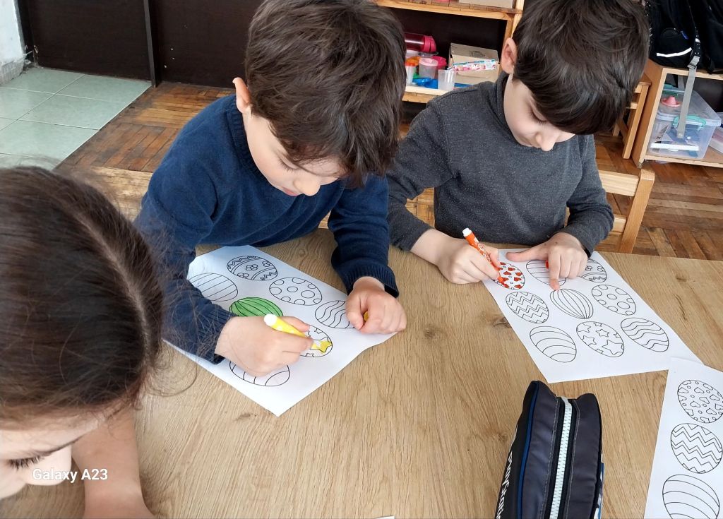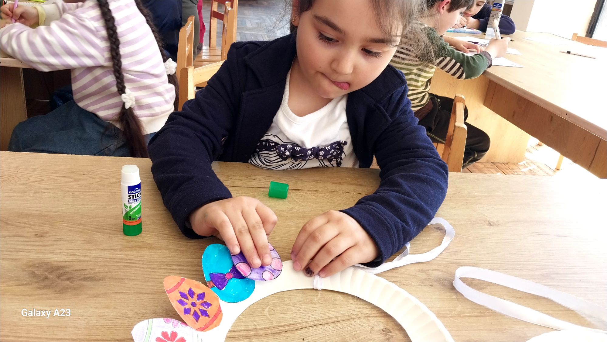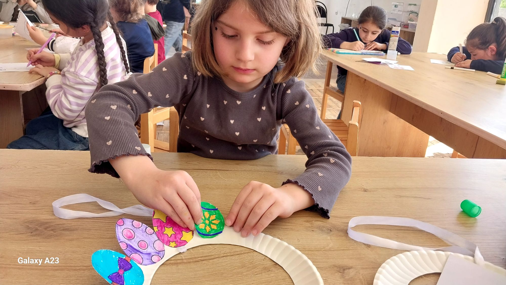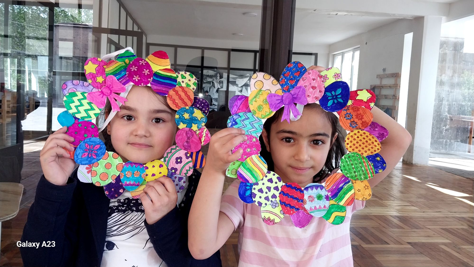 <<Զատիկ>> ուսումնական նախագծի շրջանակներում սովորողների հետ միասին պատրաստեցինք զատկական դեկոր, որը ոչ միայն զարդարեց մեր դասասենյակը, այլև ստեղծեց տոնական և ուրախ մթնոլորտ։ Նախապես տպված ձվիկները երեխաները մեծ ոգևորությամբ և երանգներով գունավորեցին՝ ցուցաբերելով իրենց ստեղծագործական մտքերը։ Այնուհետև դրանք ճշգրտորեն կտրեցինք և խնամքով փակցրեցինք թղթե ափսեների վրա։ Արդյունքում ստացան յուրօրինակ և գունեղ զարդեր, որոնք արտացոլում էին Զատկի խորհրդանշանները և երեխաների ջերմ մասնակցությունը։